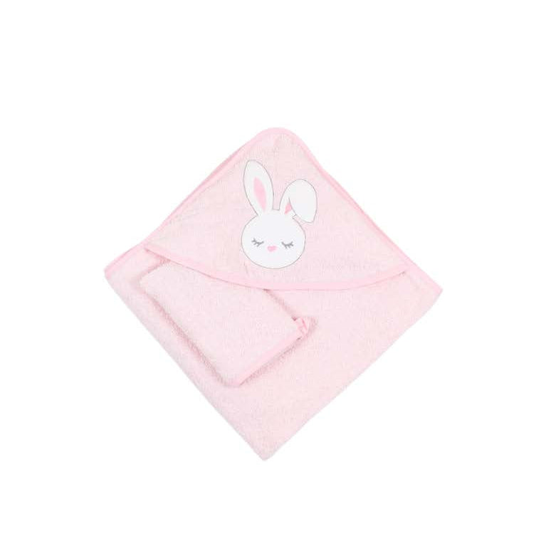 sleepy rabbit hooded baby girl towel with gloves 75x75cm