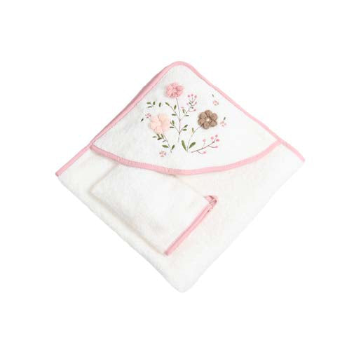 floral hooded baby towel with gloves 75x75cm