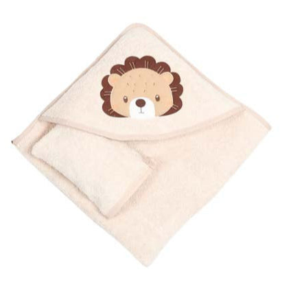 lion hooded baby towel with gloves 75x75cm