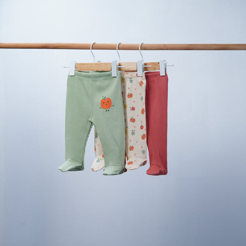 set of 3 baby soft cotton pants with feet